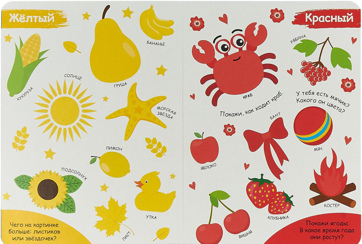 Картон потный, хорошая книга но цветов мало. Синий, зелёный, красный,жёлтый, оранжевый, розовый, белый, чёрный.