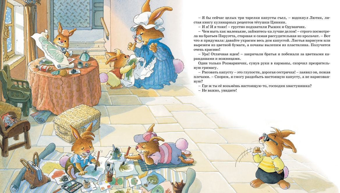 Потрясающая серия книг о Кроликах. Также снят сериал Истории папы кролика. Приключения малышей очень интересные, учат хорошему, помогают малышу сделать выводы. Иллюстрации в книге очень интересные, полные мелких деталей, что вызывает восторг у детей и взрослых.