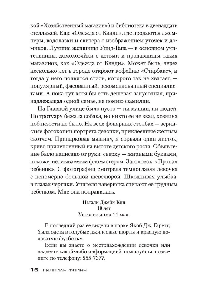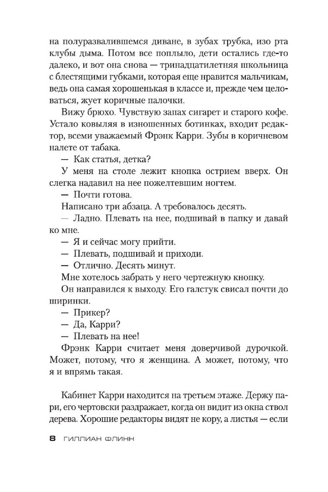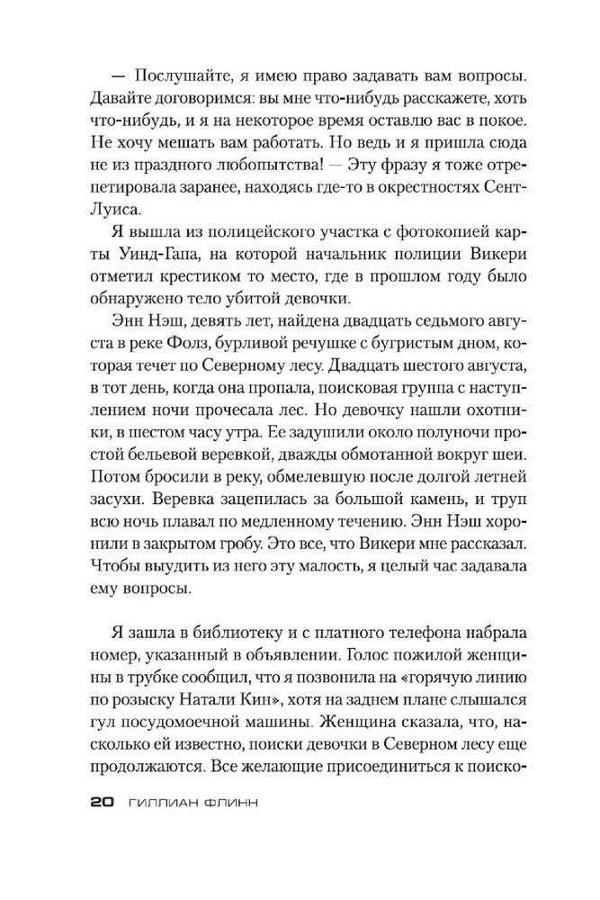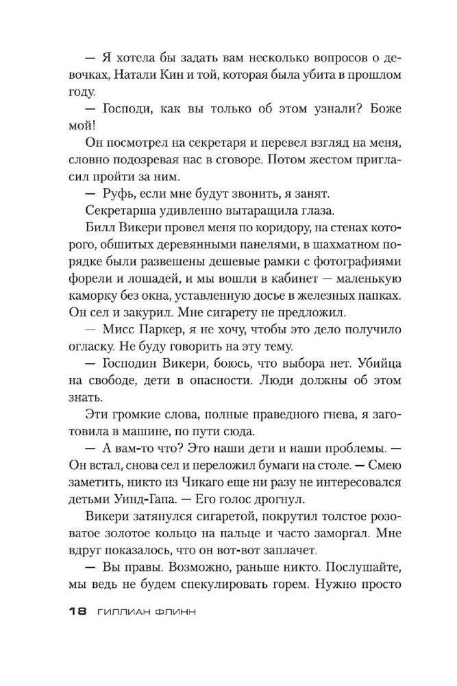 Книга интересная, мне понравилась, но читать можно только один раз), так как где то ближе к середине догадалась кто убийца и поняла мотивы его деяний. Стиль повествования автора довольно хлесткий, неожиданный, слишком откровенный (18+). Думаю, что поищу другие книги Флинн здесь.