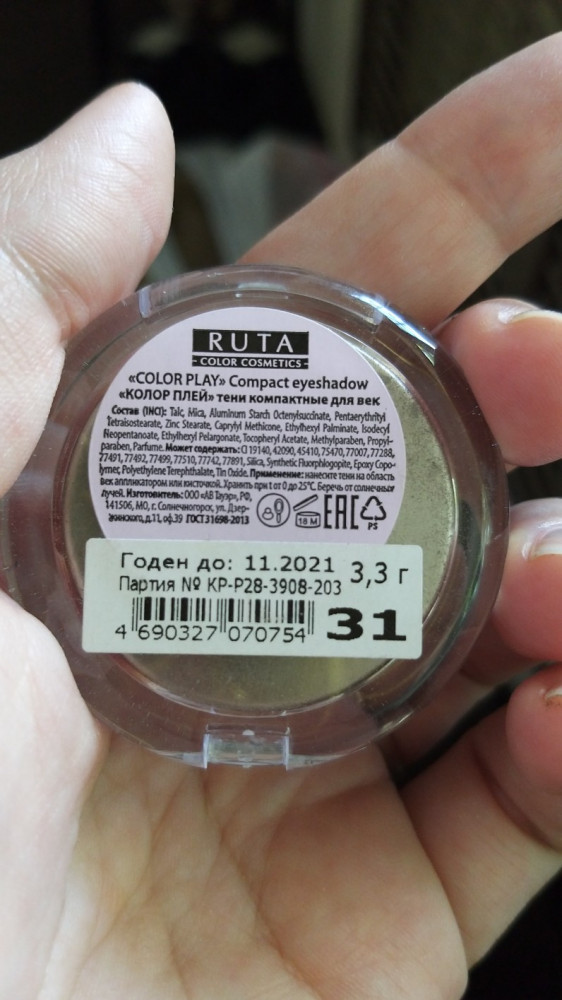 Неплохие тени. Брала оттенок марсала, в реальности бордово-коричневый, я такой и хотела! Присутствует мелкий шиммер. На базе держатся хорошо.
