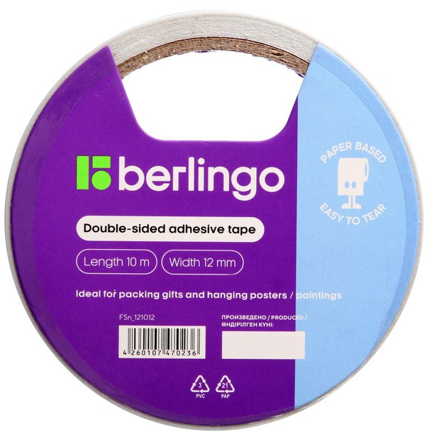 Berlingo Клейкая лента двусторонняя (12мм×10м)хорошо клеится двусторонняя качественный В данный момент этот товар отсутствует в продаже. Возможно, у нас найдется аналогичный или похожий товар здесь. Канцелярская двусторонняя клейкая лента прекрасно подходит для использования как в офисе, так и дома. Она идеальна для оформительских работ, детского творчества, упаковки подарков, закрепления постеров. |