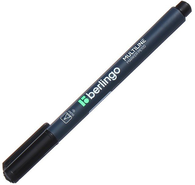 Berlingo Маркер перманентный (1 мм, черный)+17 тонкая линия насыщенный цвет быстро сохнет не размазывается удобный недолговечный