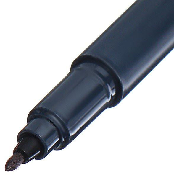 Отличный маркер с тонкой линией письма, очень удобный, хорошего качества. Пишет хорошо, быстро высыхает, не стирается.