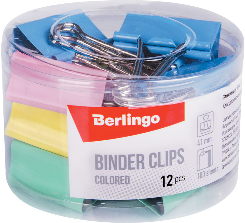 Berlingo Зажимы для бумаг (12 шт.)+80 размер подходит качество отличное расцветка яркая