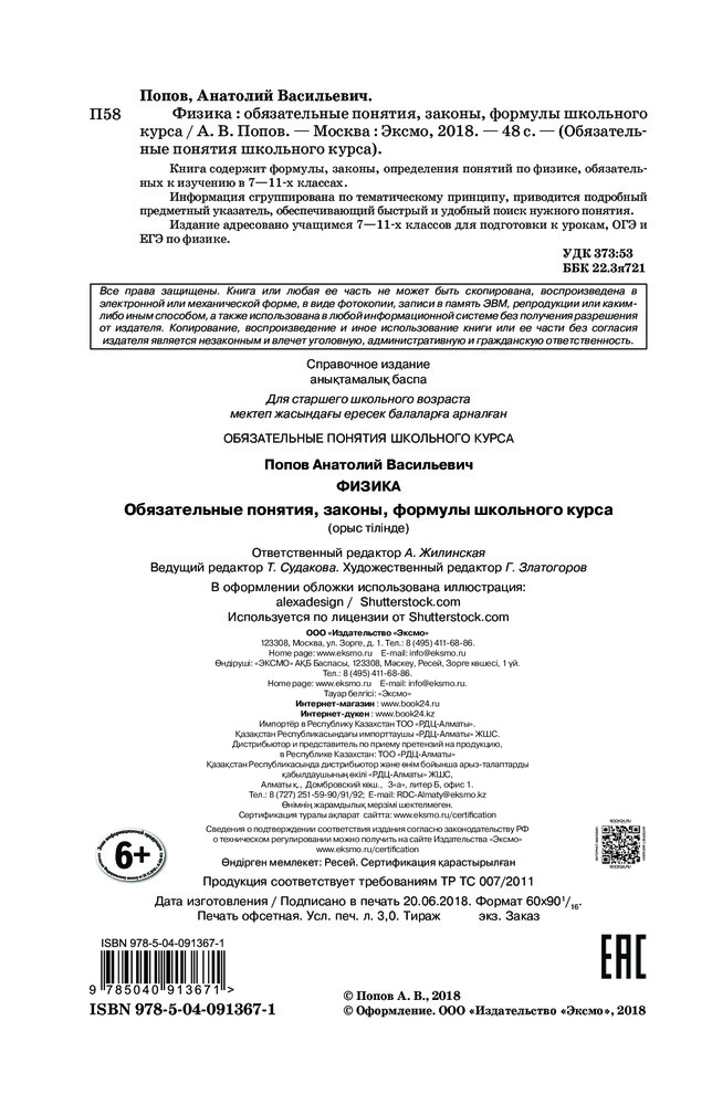 Физика. Обязательные понятия, законы, формулы школьного курсаВ данный момент этот товар отсутствует в продаже. Возможно, у нас найдется аналогичный или похожий товар здесь. Серия: Обязательные понятия школьного курса (обложка) Книга содержит формулы, законы, определения понятий по физике, обязательных к изучению в 7–11-х классах. Информация сгруппирована по тематическому принципу, приводится подробный предметный указатель, обеспечивающий быстрый и удобный поиск нужного понятия. Издание адресовано учащимся 7–11-х классов для подготовки к урокам, ОГЭ и ЕГЭ по физике. |