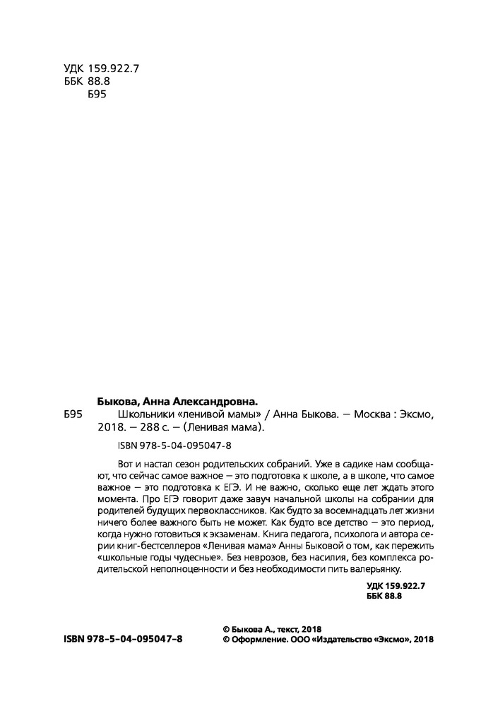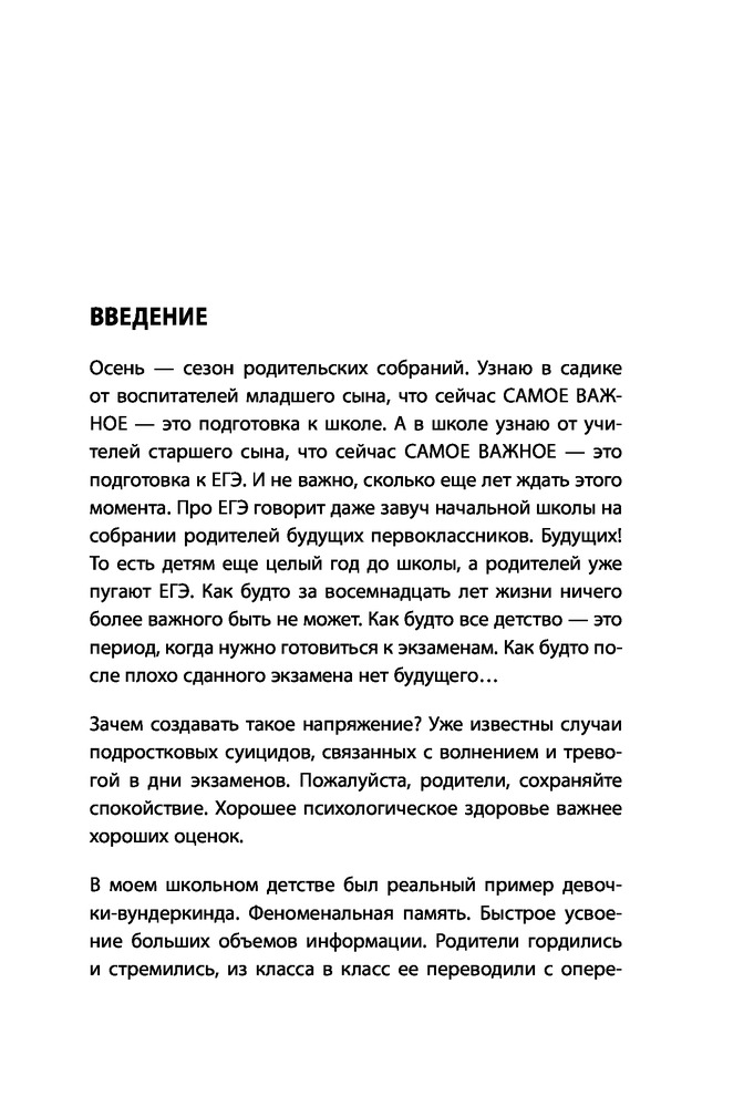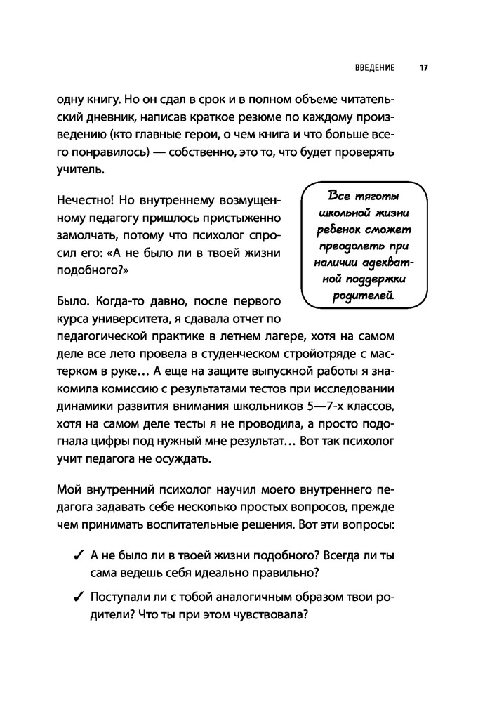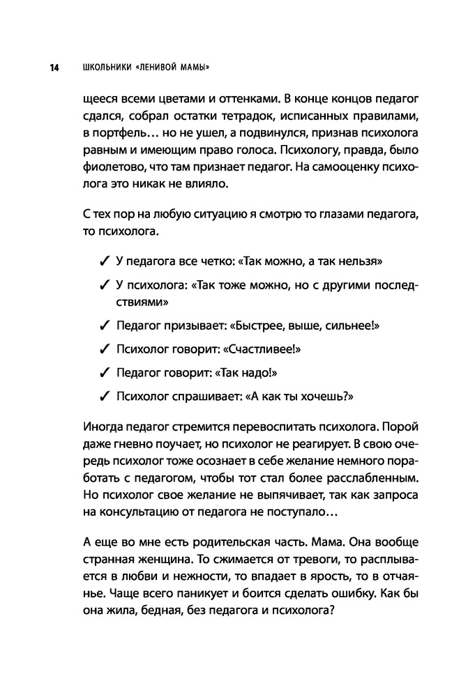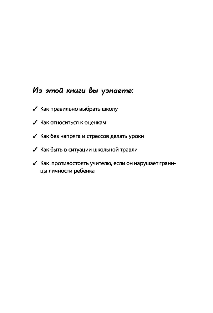 Книга оооооочень хорошая! Вся книга, «от корки до корки» - источник полезной информации для мамы школьника и для мамы вообще. Очень советую прочитать книгу даже тем мамам, у кого дети ещё не ходят в школу. Заранее! И тем, у кого дети уже подростки! Поможет увидеть и проанализировать свои ошибки и исправить их.