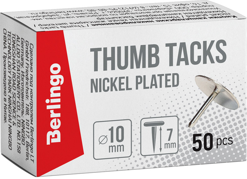Кнопки-гвоздики никелированные для надежного крепления бумаги. Упаковка в картонную коробку — 50 шт. |