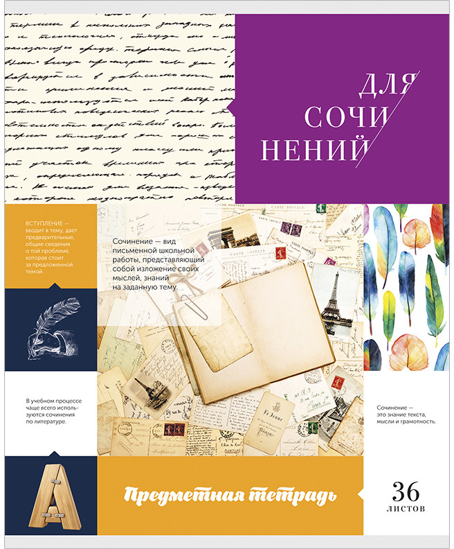 ArtSpace Тетрадь предметная «Для сочинений»В данный момент этот товар отсутствует в продаже. Возможно, у нас найдется аналогичный или похожий товар здесь. Серия: Предметная мозаика Тетрадь в линейку, предназначена для объемных записей и незаменима для старшеклассников. Обложка, выполненная из мелованного картона, позволит сохранить тетрадь в аккуратном состоянии на протяжении всего времени использования. Лицевая сторона оформлена красочным изображением. Внутренний блок тетради, соединенный металлическими скрепками, состоит из 36 листов белой бумаги. |