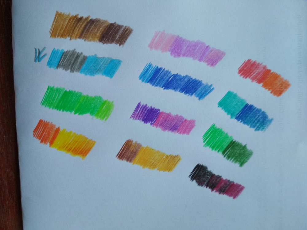 Интересные карандашики, только надо приноровиться как ими разукрашивать, чтобы получить красивые переходы. Вот только сочетание цвета у одного карандаша не совсем поняла там где голубой с серым. На фото отметила. Разукрашивают очень мягко, цвета яркие.