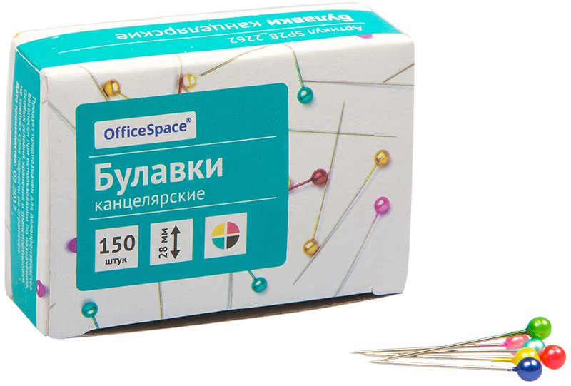 OfficeSpace Булавки офисные (150 шт.)-20% +9 яркие головки острые много штук соответствие описанию