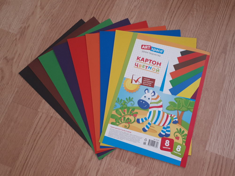 Картон тонковат, цвета хорошие. К нам приехал набор без чёрного листа, что не критично, но немножко обидно.