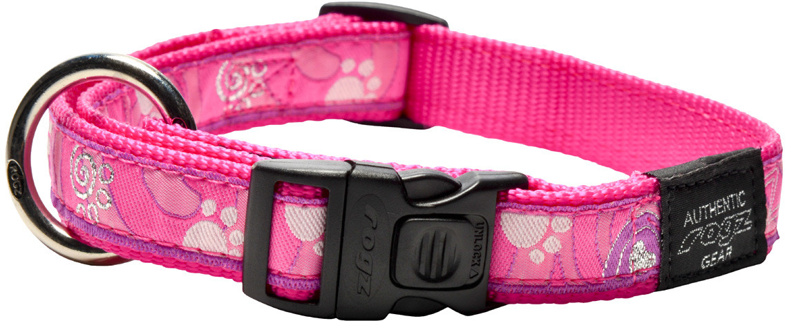 Rogz Ошейник для собак «Розовая лапка» (ширина 1,6 см, 26-40 см)