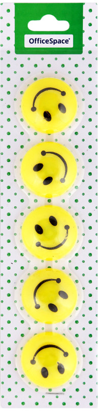 OfficeSpace Магнит для досок «Смайлик» (5 шт.)+15 крепкие яркие цепляются весёлые