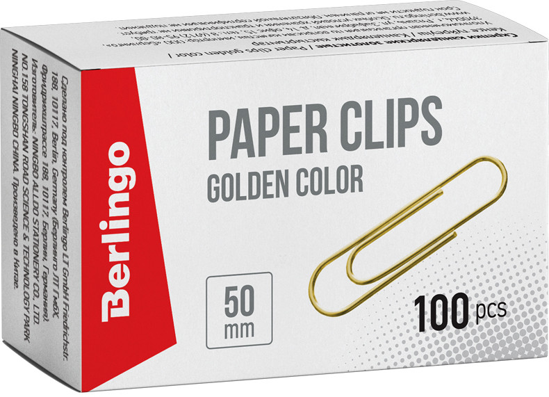 Berlingo Скрепки канцелярские (золотистые, 50 мм, 100 шт.)-20% +38