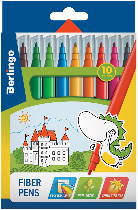 Berlingo Фломастеры (смываемые, 10 цветов)-20% +23 яркие цвета не сохнут легко смываются