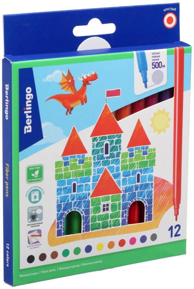 Berlingo Фломастеры (смываемые, 12 цветов)-40% +6 яркие цвета тонкая линия удобный корпус без запаха не смываются