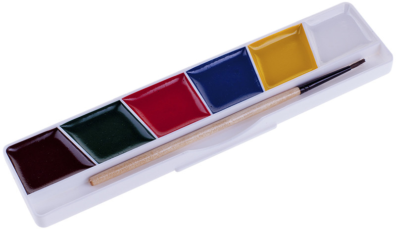 Всё как и на фото, 6 цветов, среди них нет черного (это то, что было обязательным), кисть #2 тонкая в меру, в самый раз рисовать ребенку. Цвета очень насыщенные, хорошо рисуют, нет блеклых полос