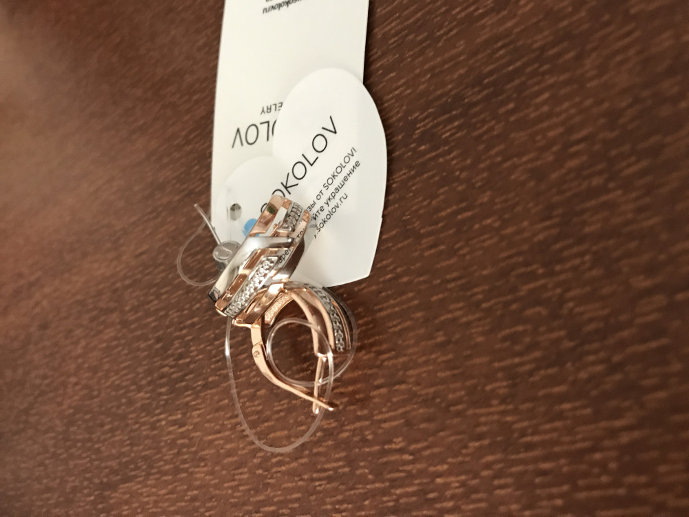 К моему огорчению, на деле цвет серёг оказался ближе к медному, нежели на картинке (на сайте цвет серёжек желтого золота). А также еле видно, что в серьгах полоски от желтого золота переходят в белое.