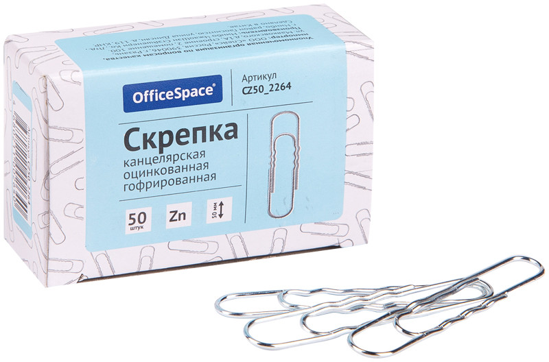 OfficeSpace Скрепки канцелярские (оцинкованные, гофрированные, 50 мм, 50 шт.)-30% +8 крупные нужные слабо держат