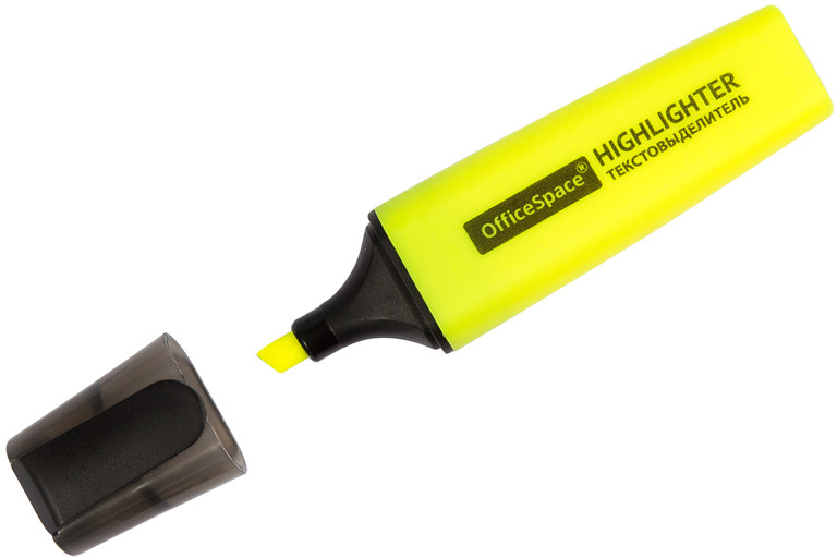 OfficeSpace Текстовыделитель (желтый)-20% +2 яркий цвет хорошее качество ровная полоска пропечатывание