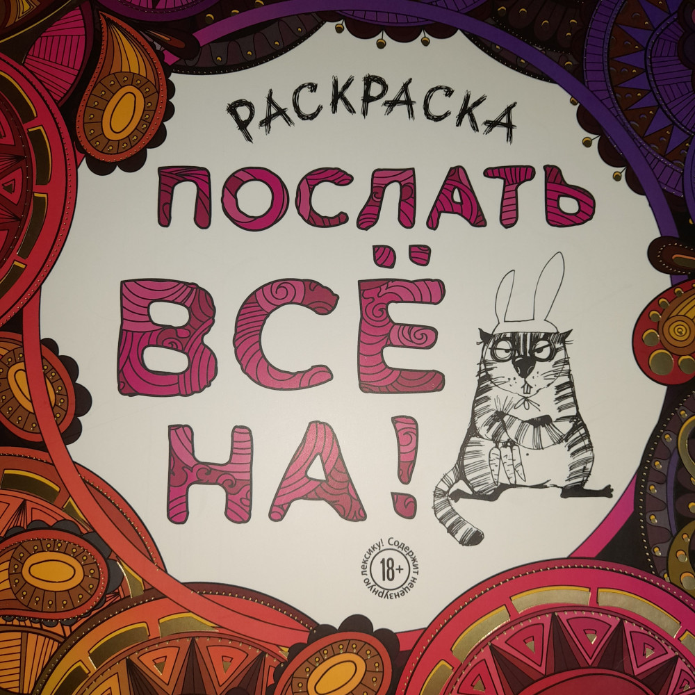 Раскраска-антистресс для взрослых. Послать все на!-20% +27 большой размер оригинальная обложка фразы мозг отдыхает яркие краски