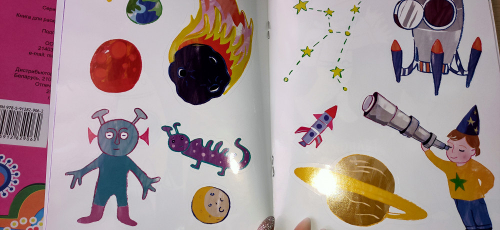 KiddieArt Креативная раскраска с наклейками «Космос»В данный момент этот товар отсутствует в продаже. Возможно, у нас найдется аналогичный или похожий товар здесь. Создавая эту серию раскрасок, мы отошли от традиционной графики и предлагаем нашим маленьким друзьям и их родителям вместе с нами посмотреть на мир глазами ребёнка! Наклейки — это всегда здорово! Придумывайте, обводите, рисуйте карандашами, восковыми мелками или акварелью. Но главное — испытывайте радость, создавая яркие и интересные истории! |