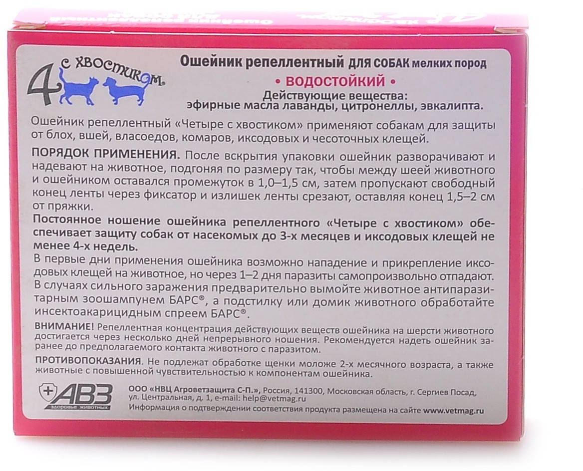 Агроветзащита Ошейник репеллентный «Четыре с хвостиком» (для мелких пород, 35 см)-20% +40 эффективная защита травяной запах легко принимается длительный эффект