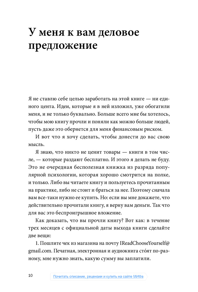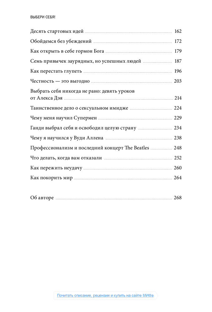 Выбери себя!легко читается грязная В данный момент этот товар отсутствует в продаже. Возможно, у нас найдется аналогичный или похожий товар здесь. Серия: МИФ. Личное развитие Жизнь состоит из череды взлетов и падений, черных и белых полос. Эта книга о том, как, подобно барону Мюнхгаузену, вытянуть себя из трясины жизненных неурядиц, обрести уверенность в себе, в своих силах и вновь выйти на дорогу, ведущую к успеху. Автор из реальных историй (в том числе из своей жизни) выводит основные принципы, способные помочь человеку выбрать себя и не рассыпаться на десятки маленьких «каких-же-я-неудачников». |