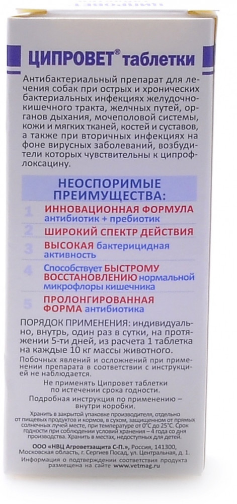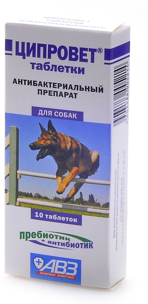Ципровет (антибактериальный препарат, ципрофлоксацин+пребиотик) назначают собакам и кошкам с лечебной целью: