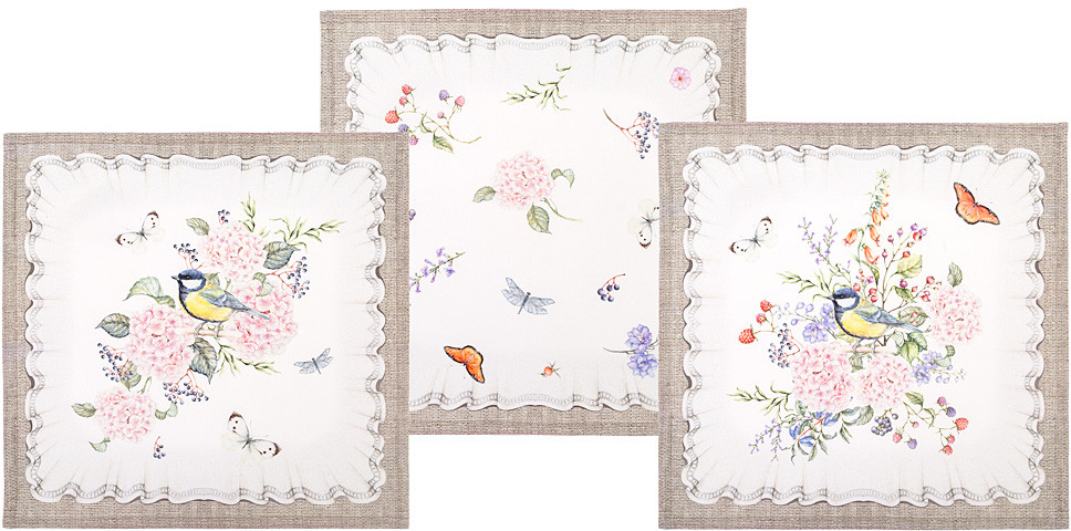 Набор салфеток дополнят скатерть и защитят её от загрязнений во время принятия пищи. Дизайн салфеток оформлен в приятных тонах, поэтому вы сможете красиво оформить праздничный столик для гостей.