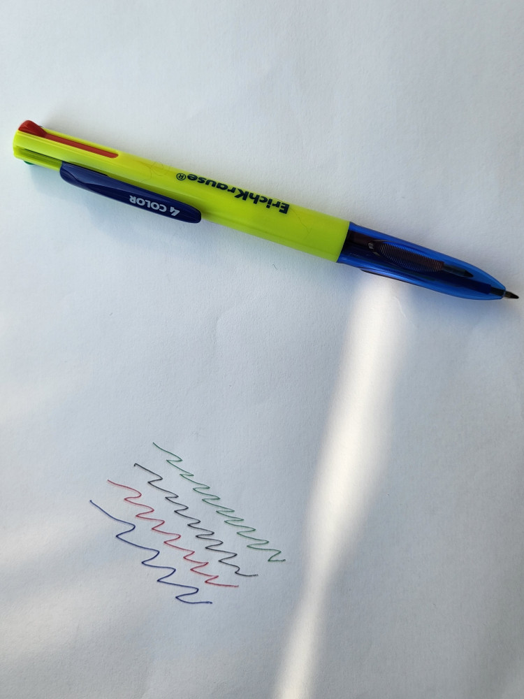 Классическая ручка несколько цветов в одном) Пишет гладко, цвета считываются. Зелёный цвет хотелось бы поярче, но не принципиально)