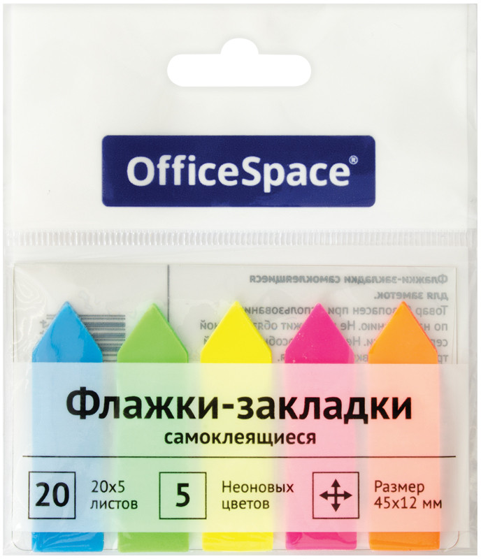 OfficeSpace Флажки-закладкикачество удобство повторная покупка для закладок расположение клея В данный момент этот товар отсутствует в продаже. Возможно, у нас найдется аналогичный или похожий товар здесь. Самоклеящиеся пластиковые флажки-закладки в виде «стрелки» 45×12 мм. 5 ярких неоновых цветов по 20 закладок. |
