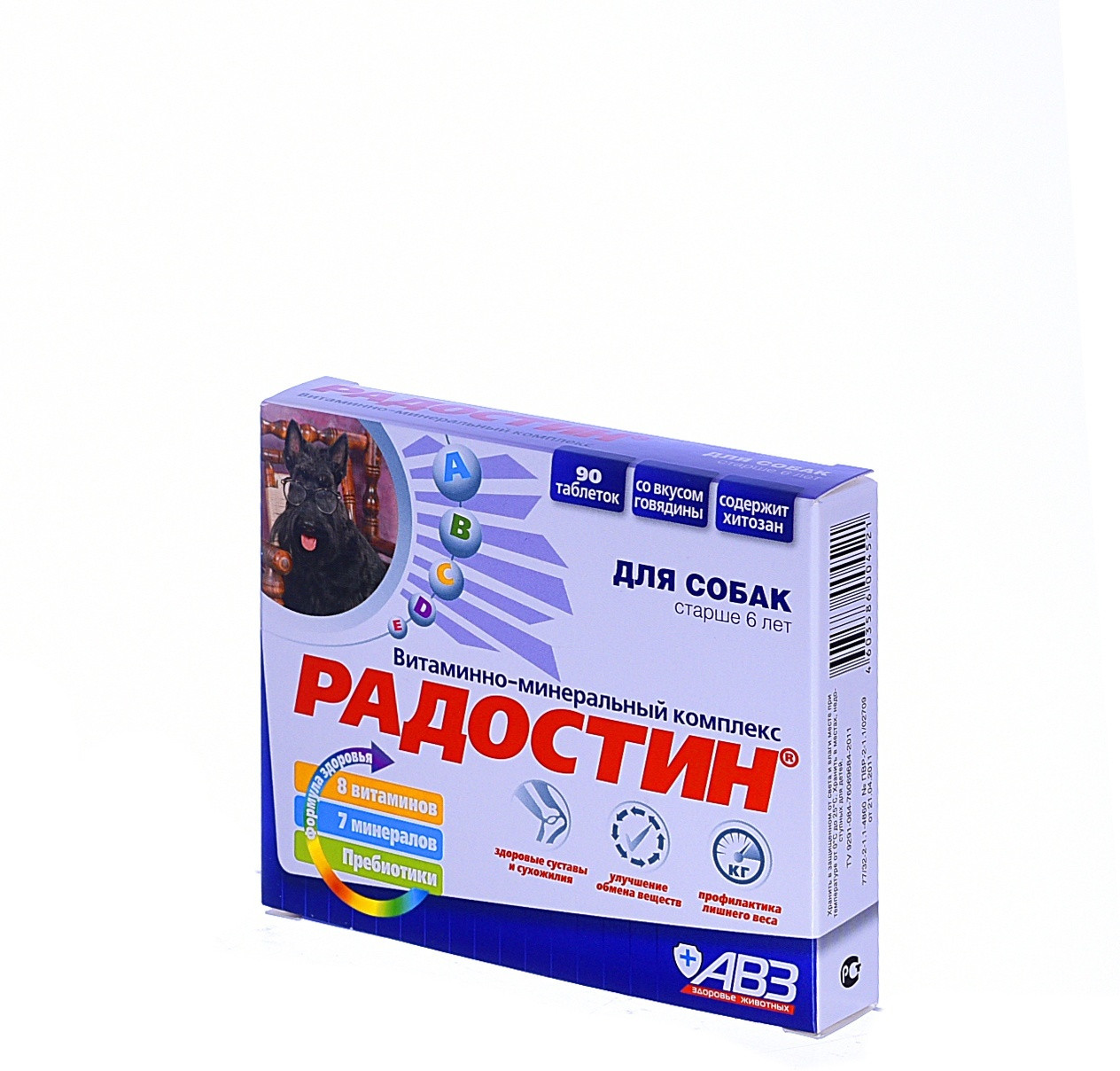 Витаминно-минеральный комплекс «Радостин» для собак – это комбинированный препарат, в котором витамины, макро- и микроэлементы находятся в сбалансированном, физиологически обоснованном соотношении, обеспечивая таким образом его максимальную эффективность.