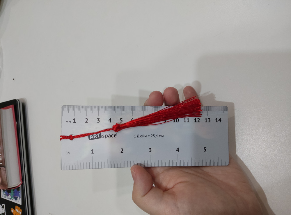 Маленькая, эффектная стереозакладка с линейкой в сантиметрах и дюймах на обратной стороне. Есть кисточка, поэтому в книге её легко найти.