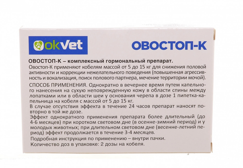 | Агроветзащита Капли на холку «Овостоп» (для кобелей, 5-15 кг, 2 пипетки)