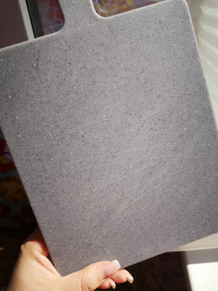 Остаются царапины от ножа, хотя меньше чем на обычных пластиковых досках