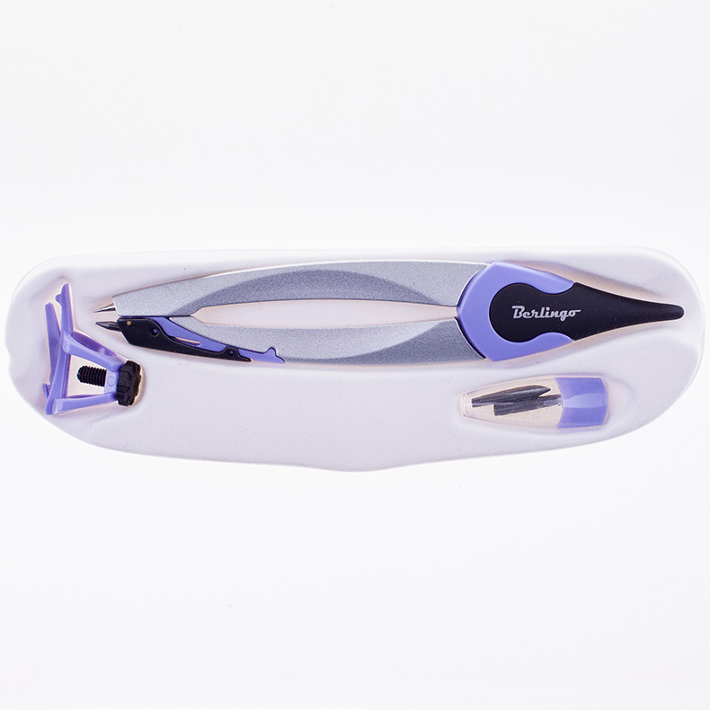Высококачественный циркуль из цинкового сплава, с эргономичной головкой, с механическим карандашом, инновационным дизайном и расцветкой. Располагается в пластиковом футляре с европодвесом. Эргономичная головка/держатель циркуля.