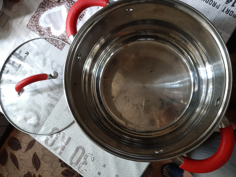 Кастрюля очень маленькая, не 3.9 л а 3.4, металл не качественный тонкий, появились пятнышки.