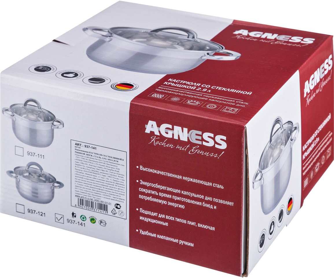 Agness Кастрюля с крышкой и силиконовыми ручками