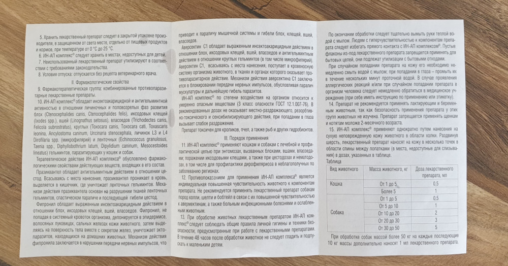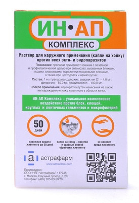 Прокапала всех кошек и котов. Кто сталкивался с тем, как заставить кошку проглотить таблетку, знает, насколько это сложней сделать, чем с собакой. Даже если темперамент вашего пушистика покладистый. Это одному. А когда их 6?!!!! Поэтому капли ИН-АП - замечательное решение. Единственное, флакон непрозрачный, если делить на 2 холки, не видно, сколько вылито, и сколько осталось. Я набирала из флаконов в 2х граммовый шприц, благополучно откапала всех. Быстро выветривается, запаха агрессивного нет. Желаю всем здоровых питомцев