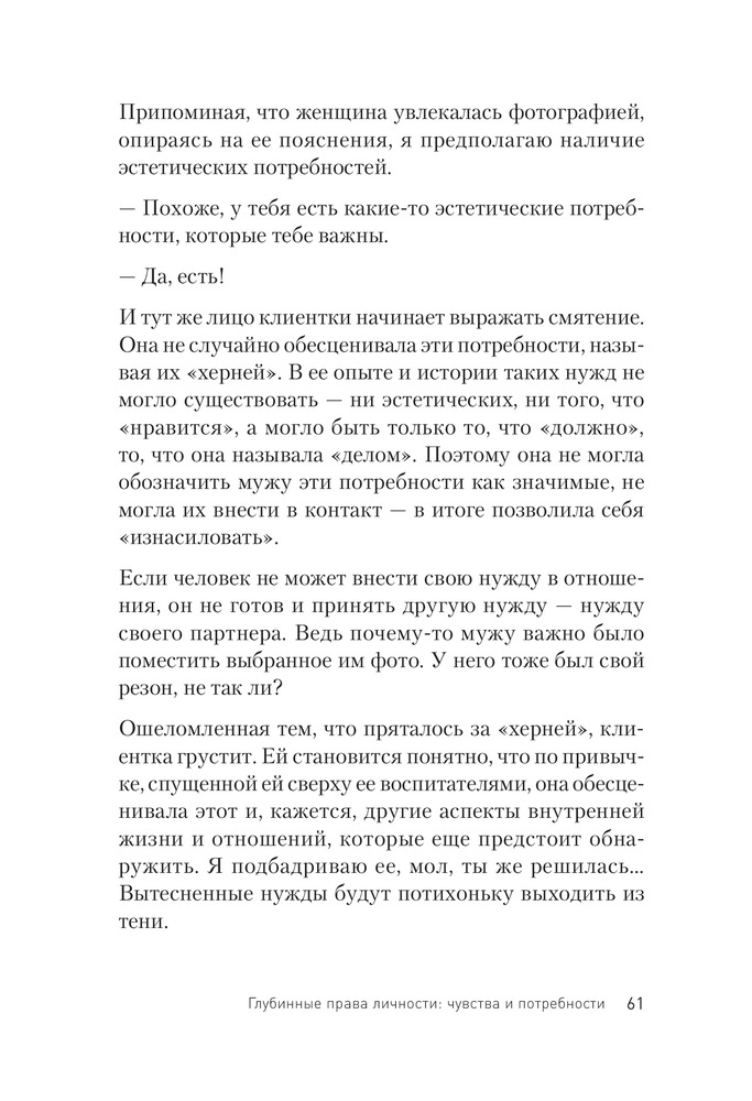 Этот автор для меня открытие. Каждая глава — пища для размышления. Мне эту книгу практикующий психолог рекомендовал. Книга будет интересна тем, кто интересуется психологией, занимается саморазвитием, ищет информацию о воспитании детей, хочет лучше понять себя, или же думает о том, чтобы стать психологом. Книга в твердой обложке, страницы немного серые, бумага не самого лучшего качества. Но это тот случай, когда содержание гораздо важнее обложки.