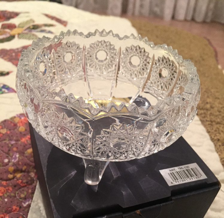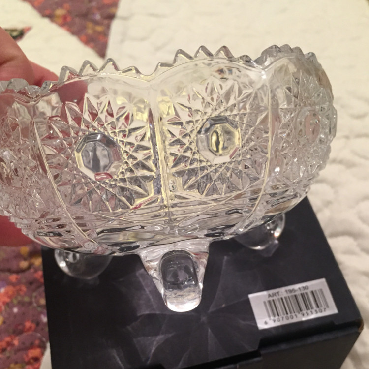 Маленькая, но вместительная. С виду похожа на хрустальную вазочку. Толстое стекло.