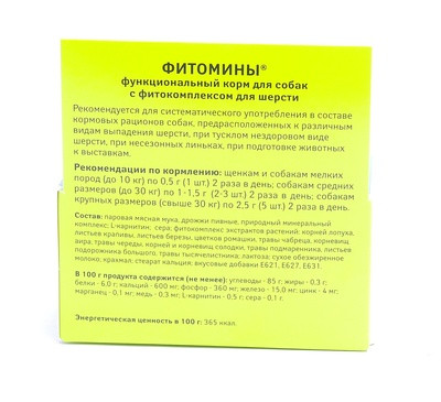 Очень хорошие фитовитамины.У нас бигль она часто выпускала неприятный "запах"из желез,после приёма этих фитовитаминов прекратила это делать..
