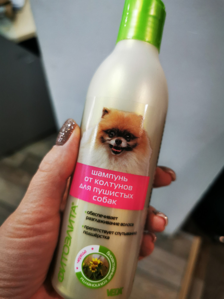 Классный шампунь,после мытья шерсть у шпица мягкая,шелковистая и без колтунов ,рекомендую!