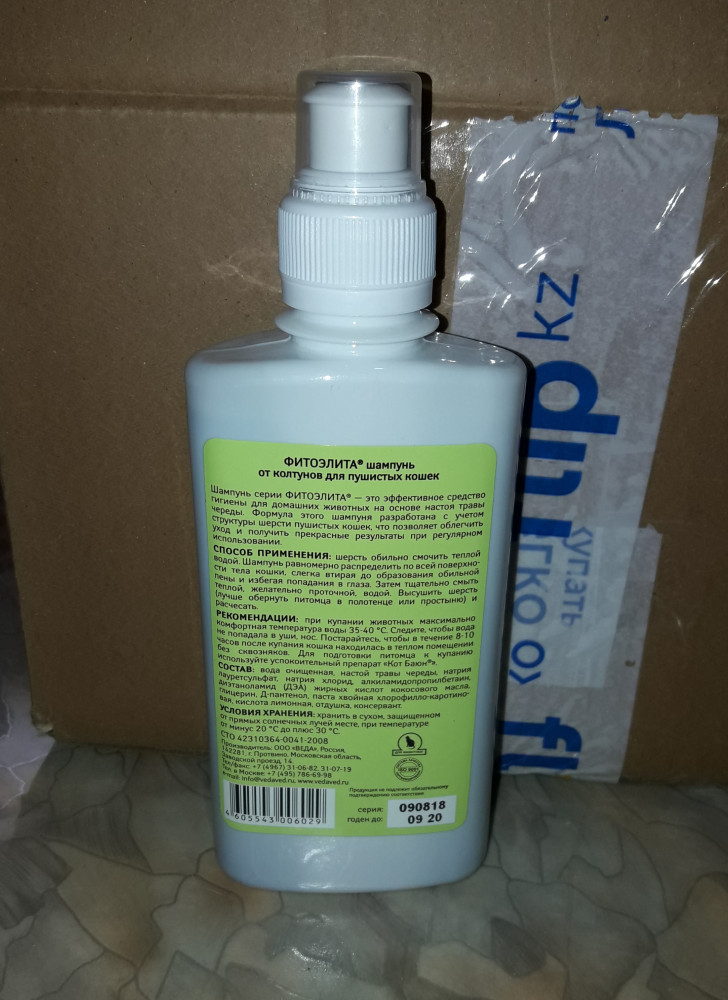 Хороший шампунь. Зеленого цвета, очень вкусно пахнет травой:)) Брали для кролика, еще не купали, видно качественный шампунь. Достаточное количество. Натуральный состав, приемлемая цена. Запаковали в пупырку, чтоб не потек. Спасибо Flip! :)