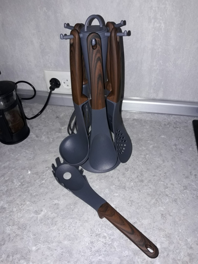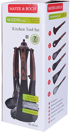Mayer & Boch Набор кухонных инструментовВ данный момент этот товар отсутствует в продаже. Возможно, у нас найдется аналогичный или похожий товар здесь. Кухонный набор Mayer&Boch очень удобен в использовании, имеет стильную стойку-подставку, которая прекрасно впишется в любой кухонный интерьер. Предметы набора имеют длинные эргономичные нескользящие пластиковые ручки, которые защитят Ваши руки от ожогов. Кухонный набор придаст Вашей кухне элегантность, поднимет Ваше настроение и превратит приготовление еды в настоящее удовольствие! В набор входит: лопатка с прорезями, половник, венчик, ложка с прорезями, ложка для спагетти, сервировочная ложка и подставка. |
