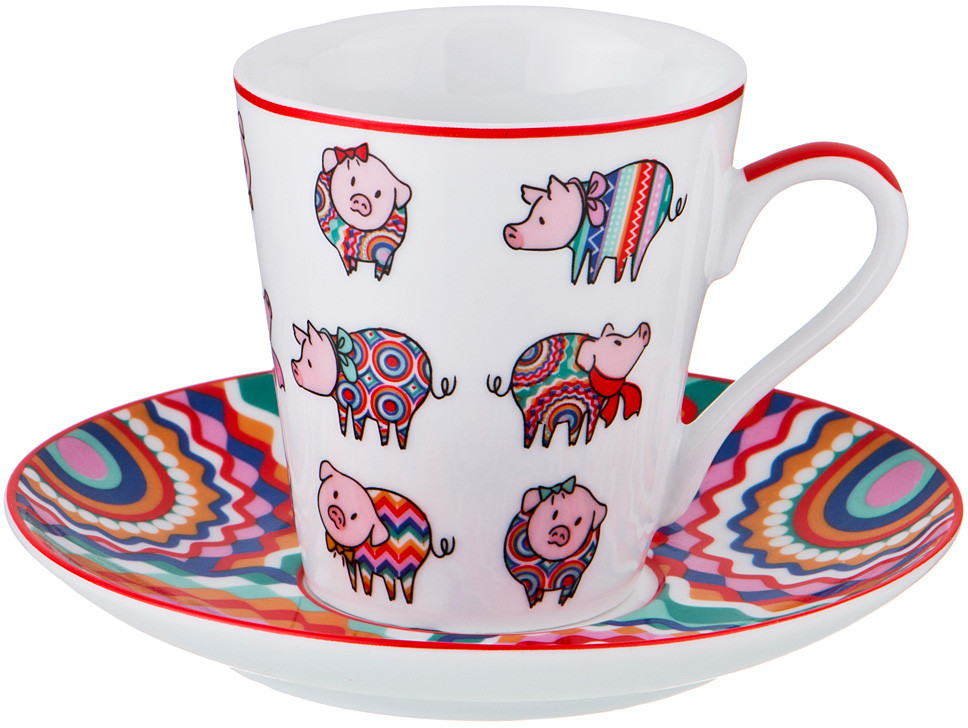 Кофейная пара станет отличным дополнением к набору кухонных принадлежностей и внесет яркий акцент в сервировку стола. Набор рассчитан на одну персону и состоит из кофейной чашки с блюдцем. Посуда выполнена из фарфора, отличается креативным дизайном и великолепным качеством исполнения. Все предметы выполнены в одном стиле и украшены оригинальным рисунком. Вместе они создают единый ансамбль и стилистически дополняют друг друга.