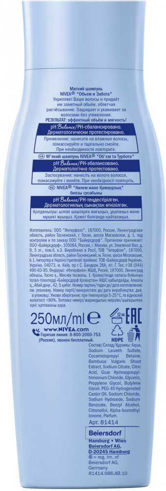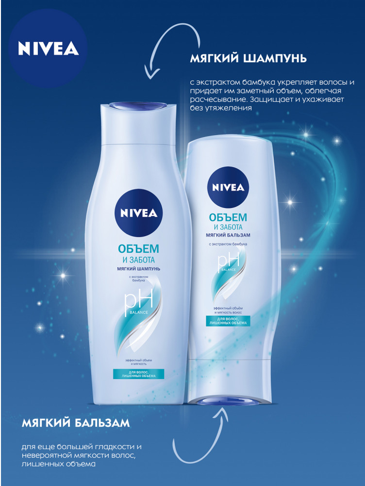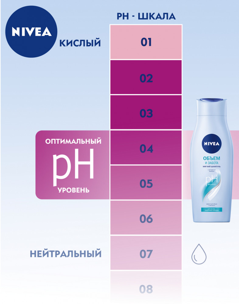 NIVEA Шампунь для волосВ данный момент этот товар отсутствует в продаже. Возможно, у нас найдется аналогичный или похожий товар здесь. Серия: Эффектный объем Шампунь-уход Эффективный Объем с экстрактом бамбука. Объем является неотъемлемой частью красивых волос. Волосы без объема выглядят безжизненными и лишенными плотности, особенно у корней. Шампунь ухаживает за волосами, не утяжеляя их, и обеспечивает упругость. Укрепляет волосы и придает им заметный объем защищает, облегчая расчесывание. |
