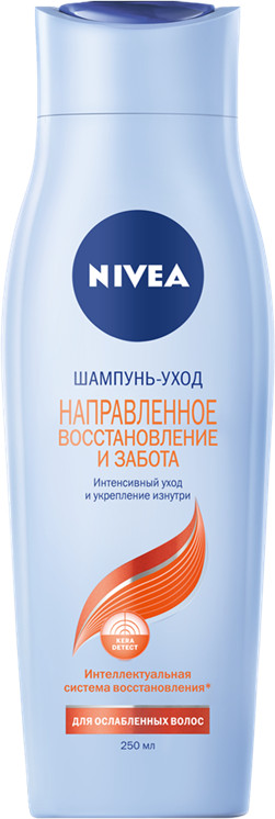NIVEA Шампунь-уход для волосВ данный момент этот товар отсутствует в продаже. Возможно, у нас найдется аналогичный или похожий товар здесь. Обновленная формула шампуней Nivea заботится, укрепляет и защищает волосы, благодаря входящим в ее состав ингредиентам: масло Макадамии проникает в структуру волоса, укрепляя его изнутри; Eucerit® — натуральный, ухаживающий компонент, разработанный экспертами Nivea — защищает поверхность волоса от внешних воздействий Укладка феном, окрашивание, к которому прибегают около 70% российских женщин, хлорированная вода, солнце и другие факторы сначала повреждают структуру верхнего слоя волоса, кутикулы, а затем — и его сердцевину. Линейка «Направленное восстановление и забота» от Nivea с технологией KeraDetect распознает поврежденные участки волоса и восстанавливает его структуру именно там, где это необходимо. |
