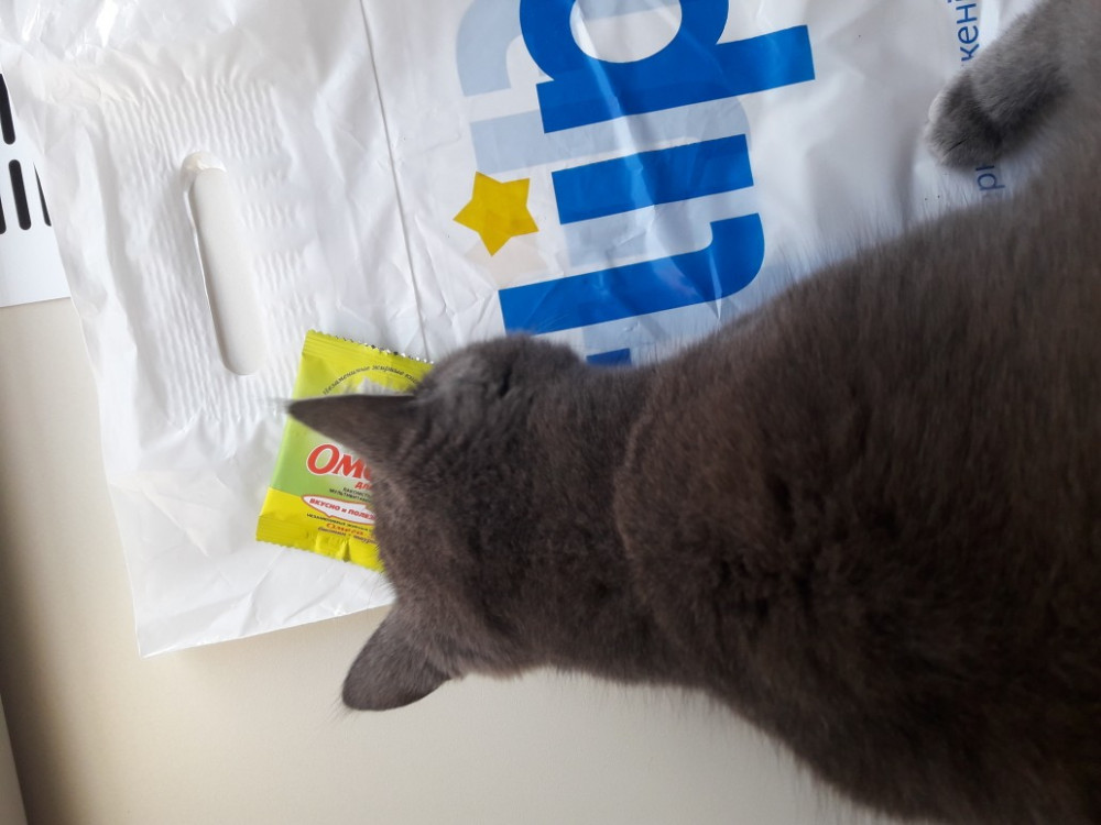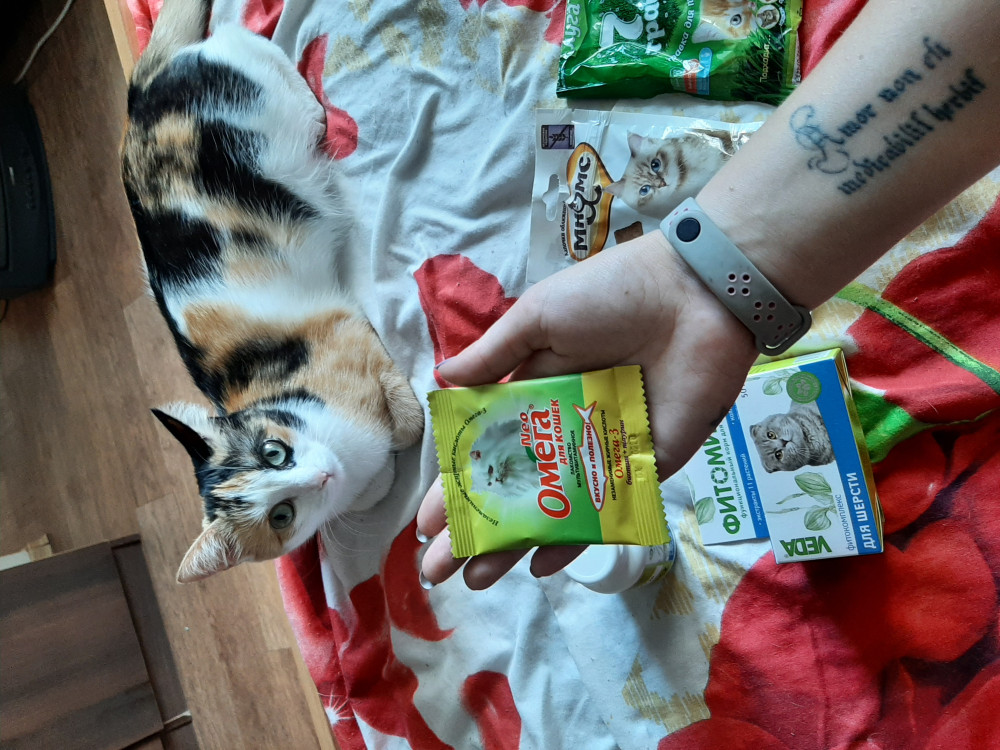 Витамины кот ел правда без особого удовольствия. давала в день по 1 шт хотя на упаковке написано давать в день по 3-4. Но так и на неделю не хватит упаковки.